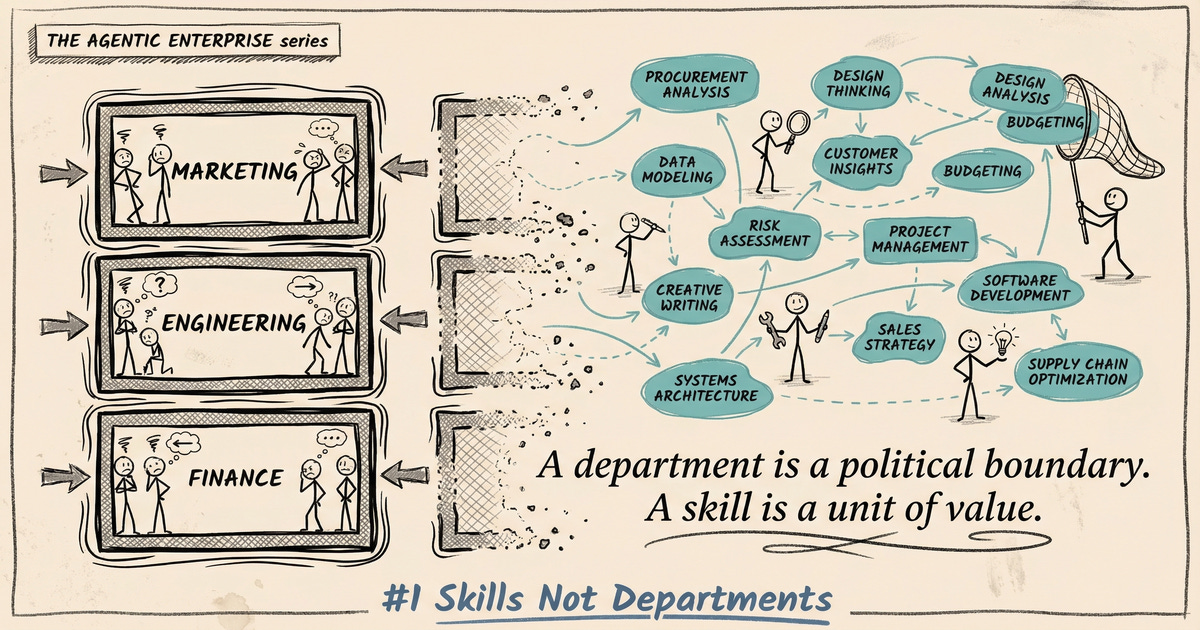 These are not the same thing, and confusing them is one of the most expensive mistakes an organisation can make. Departments exist because of org charts, power dynamics, and historical accident. Skills exist because work needs to be done. When you organise around departments, you optimise for the org chart. When you organise around skills, you optimise for outcomes.